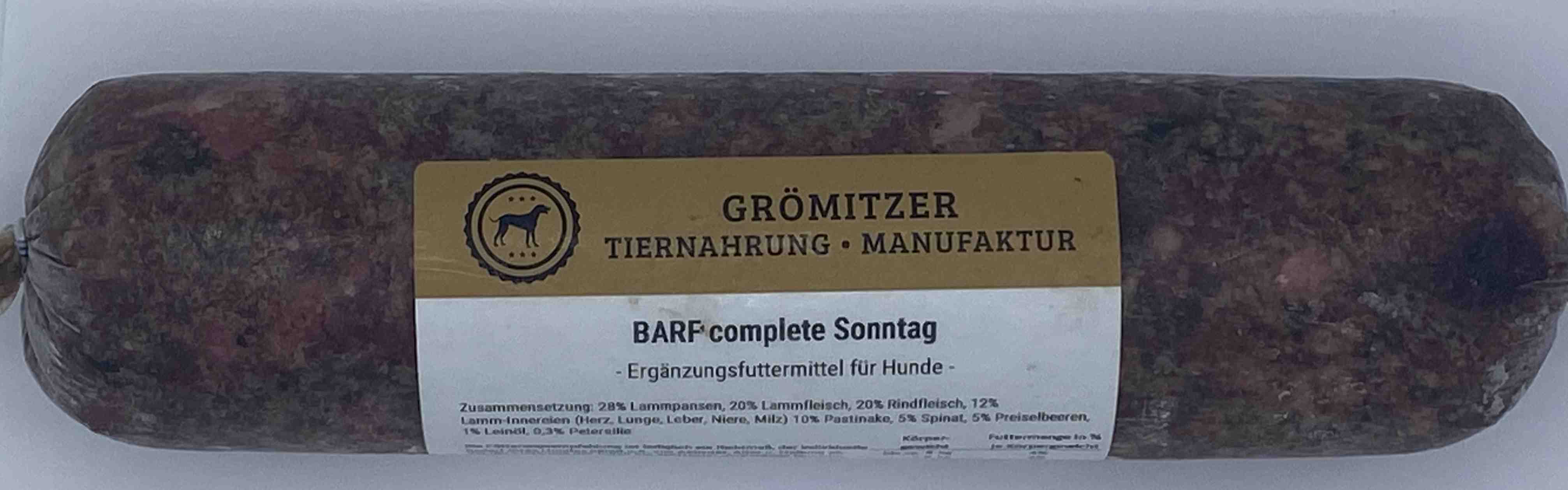 Das Wochentagsmenü Sonntag ist ein hochwertig und ausgewogenes Barf Menü für ihren Hund.